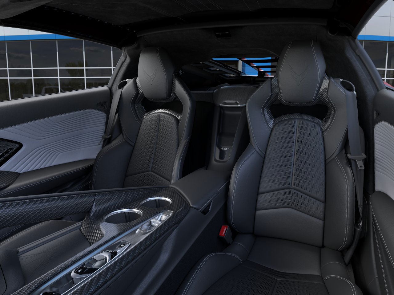 - Visible carbon-fiber roof panel with body-color surround